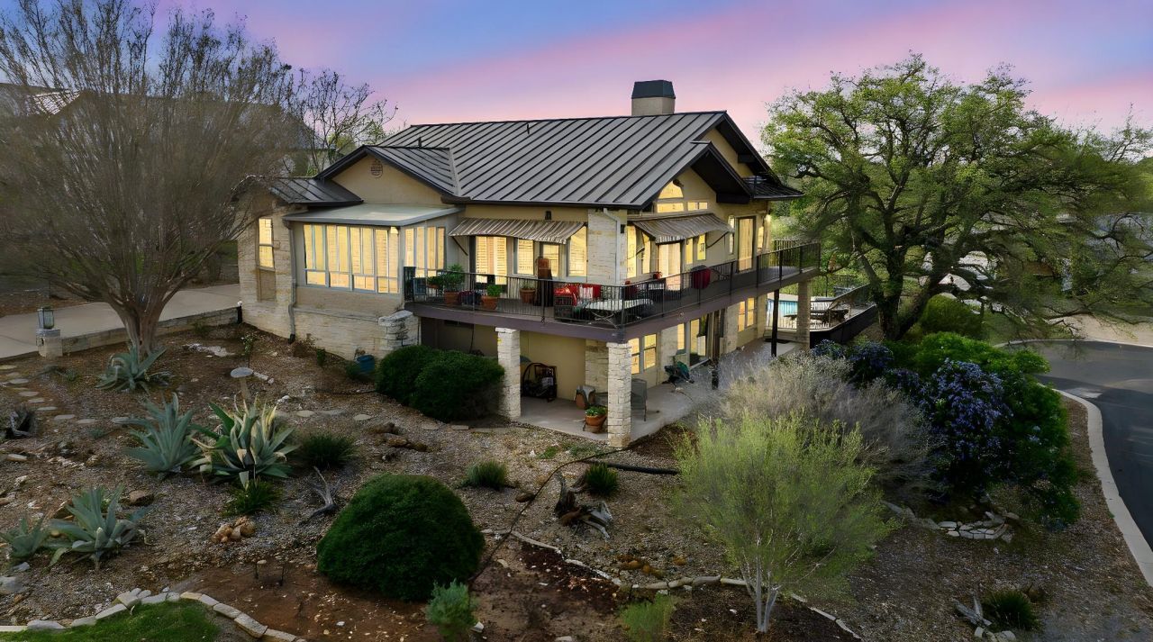 Perched to capture endless Lake LBJ and Hill Country views, this thoughtfully designed 3-bedroom, 3.5-bath home offers a peaceful retreat on a quiet cul-de-sac located in Bay West of Horseshoe Bay. The unique upside-down floor plan places the main living area and primary suite on the second level, maximizing the sweeping scenery and natural light. The open-concept kitchen and living area flow seamlessly onto a spacious wraparound porch, creating the perfect setting to relax and enjoy the serene surroundings. A second family room with a wet bar provides additional space for entertaining or hosting guests. Step outside to your private pool, ideal for enjoying warm Hill Country days while surrounded by tranquil views. The home also features shutters throughout, adding timeless style and privacy. A rare basement level offers abundant storage and convenient walk-out access, a unique and valuable feature in the area.Quiet, serene, and designed to embrace the beauty of the lake and hills, this home is a perfect blend of comfort, views, and thoughtful design.