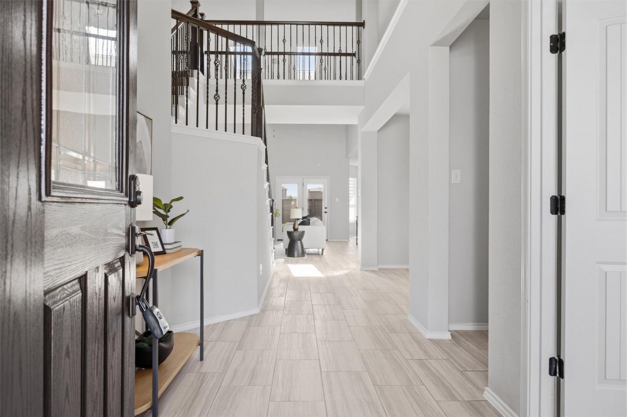 Welcome into this two-story home featuring 4 bedrooms and 2.5 bathrooms. As you enter, youre greeted by tall ceilings and natural light that carry throughout the main living areas.At the front of the home, a secondary bedroom provides a great option for a home office or guest space. Just off the entry, a dedicated formal dining room creates the perfect setting for gatherings. The spacious living room features a cozy fireplace and skylights that bring in abundant natural light. It flows into the kitchen with a center island and into the breakfast nook lined with windows.The primary suite is located on the main floor and offers a comfortable retreat with bay windows and direct access to the back patio. The en-suite bathroom includes dual vanities, a walk-in shower, and a generously sized walk-in closet.Upstairs, youll find a versatile flex space, along with two spacious bedrooms and a full secondary bathroom. A connecting walkway overlooks the main living area below, adding an open feel to the upper level.Out back, enjoy a covered patio and added privacy with no rear neighbors?perfect for relaxing or entertaining. Additional features include a water softener that will convey with the home. Residents of Hutto Square enjoy access to community amenities including a pool, park, and playground, all in a convenient location close to local shopping, dining, and schools. Schedule a showing today!