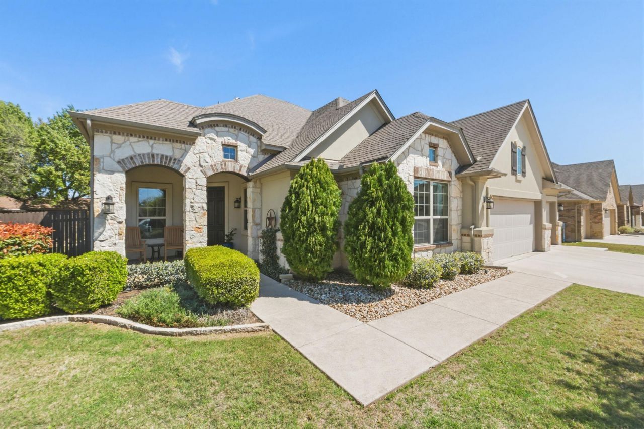 Built in 2014, this thoughtfully designed 1.5 story home features 3 bedrooms, 3 car garage and dedicated office all on the main level. Plus bonus room upstairs with full bath could be a second living room, media room, game room, man cave, or potential 4th bedroom. Open kitchen with a large center island flows seamlessly into the living area, making it ideal for everyday living and entertaining. Generous primary suite enjoys peaceful backyard views and includes hardwood floors, a large walk-in shower and bench, separate garden tub, and an oversized walk-in closet. Additional highlights include a dedicated laundry room, front and back yard sprinkler system, beautiful landscaping, covered back porch, and an expanded patio with covered pergola.Ideally located walking distance to the Bell District, public library and farmers market, and minutes from toll roads, shopping, dining, and entertainment. LISD Westside Elm, Cedar Park Middle, Cedar Park High School. Low tax rate of just 1.9811!