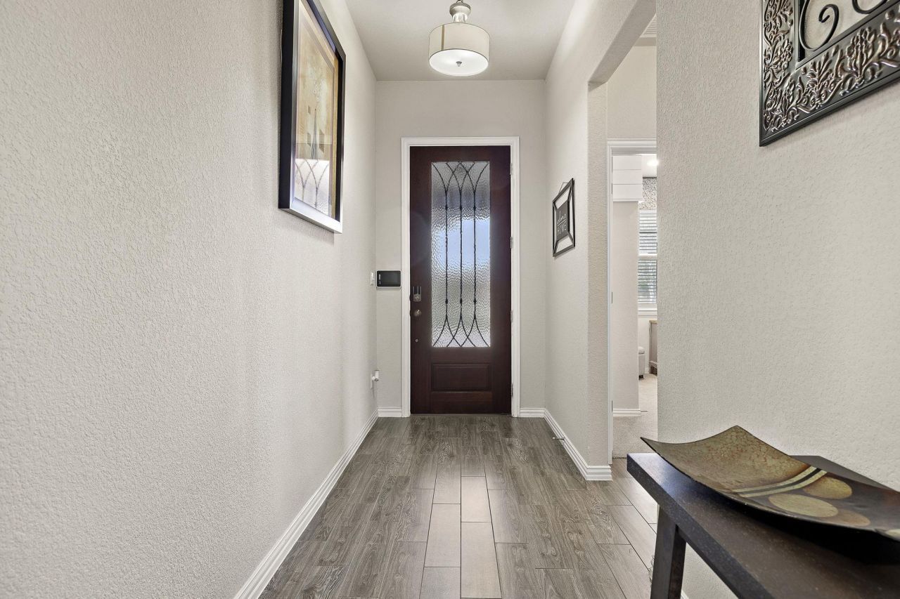 Gorgeous former M/I Homes model in the highly sought-after Carmel Creek community in Hutto, loaded with upgrades and ready for its next owner! This beautifully designed home features 3 bedrooms, 2.5 bathrooms, and a dedicated office/flex space downstairs, offering both functionality and style.Upstairs, youll find a spacious game room with a built-in office nook and half bathroom, along with a secondary bedroom featuring its own en-suite bath?perfect for guests or added privacy.This home is truly upgraded throughout, showcasing beautiful flooring, designer tile, high-end cabinetry, upgraded countertops, and a stylish backsplash. The gourmet kitchen is a standout, complete with a gas double oven, pendant lighting, and ample counter space for cooking and entertaining. Custom woodwork details add character and charm throughout the home.The primary suite is a true retreat, featuring a large bay window and a custom sliding door leading into the spa-like bathroom, which includes an oversized walk-in shower, dual vanities, and floor-to-ceiling tile?a feature carried throughout all bathrooms in the home.Step outside to a private, charming backyard with a covered patio, perfect for relaxing or entertaining. Situated on a corner lot with upgraded landscaping, this home offers both curb appeal and convenience.Ideally located directly across from a park and picnic area and within walking distance to the neighborhood pool and amenities. With quick access to Hwy 79 and Hwy 130, commuting to Tesla, Samsung in Taylor, Austin-Bergstrom Airport, and Downtown Austin is a breeze.Welcome home!