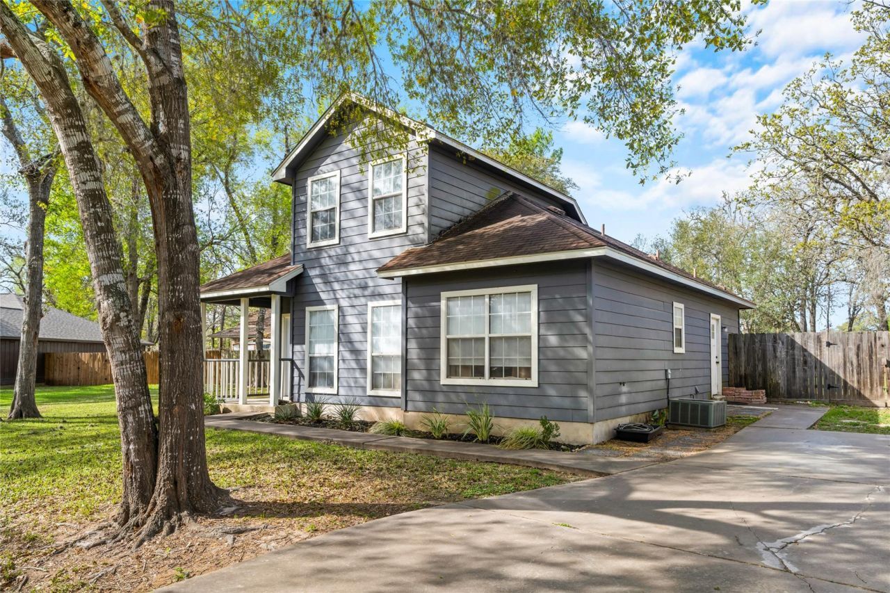 Set on the Bluff in La Granges sought-after Frisch Auf neighborhood, this inviting two-story home offers fresh bright-white interiors and an easy, open layout. Plank-style flooring runs through the main living and dining areas, where high ceilings and an open upstairs landing overlooking the dining room keep the space feeling airy. The kitchen features warm wood cabinets and a practical, easy-to-work-in layout.On the main floor, the bedrooms include a comfortable primary suite with barn-style door to the en-suite bath and walk-in closet, plus two additional rooms?one charmingly hidden behind a storybook-style bookcase door that begs to be a secret hideout or cozy nook. Upstairs, a spacious fourth bedroom/loft works well as a media room, studio, or fourth bedroom.Outside, enjoy a fully fenced backyard with patio plus a double-wide driveway. Low-fee HOA and close proximity to Frisch Auf Valley golf and country club amenities, as well as Monument Hill State Park, complete the Bluff setting.