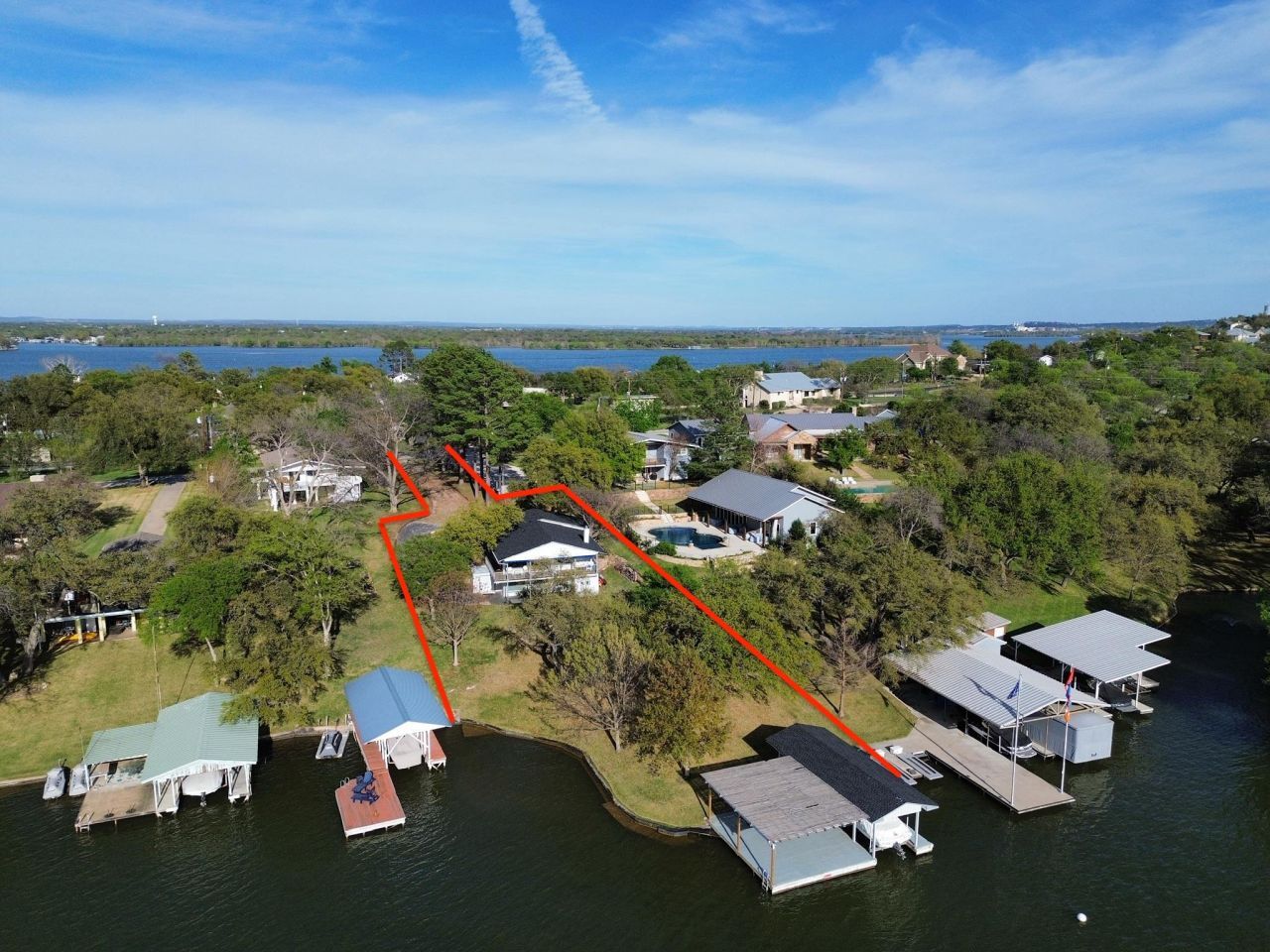 Set within the coveted Blue Lake Estates of Horseshoe Bay, this exceptional waterfront property offers a rare opportunity to secure a legacy property on Lake LBJ. Positioned on a generous lot with 82' of open water frontage, the west-facing orientation delivers sweeping sunset views across one of the lakes most desirable stretches.The existing residence, built in 1967, spans approximately 2,092 sf and features 4 bedrooms and 4 bathrooms. Full of authentic lake-house character, the home provides a solid foundation for a thoughtful renovation?or serves as the perfect canvas for a completely new custom build tailored to modern luxury living.Outdoors, the property truly shines. A private boathouse with a covered deck invites effortless days on the water, whether youre boating, entertaining, or enjoying a refreshing swim. The expansive yard offers ample space to design your ideal outdoor retreat, including room for a pool, lush landscaping, and multiple entertaining areas, all framed by open water views.Blue Lake remains one of the most sought-after waterfront addresses in Horseshoe Bay for good reason: protected value, enduring appeal, and a setting that rarely becomes available at this price point. Whether you envision restoring its timeless charm or creating a brand-new lakefront masterpiece, this is a property buyers wait years to find.